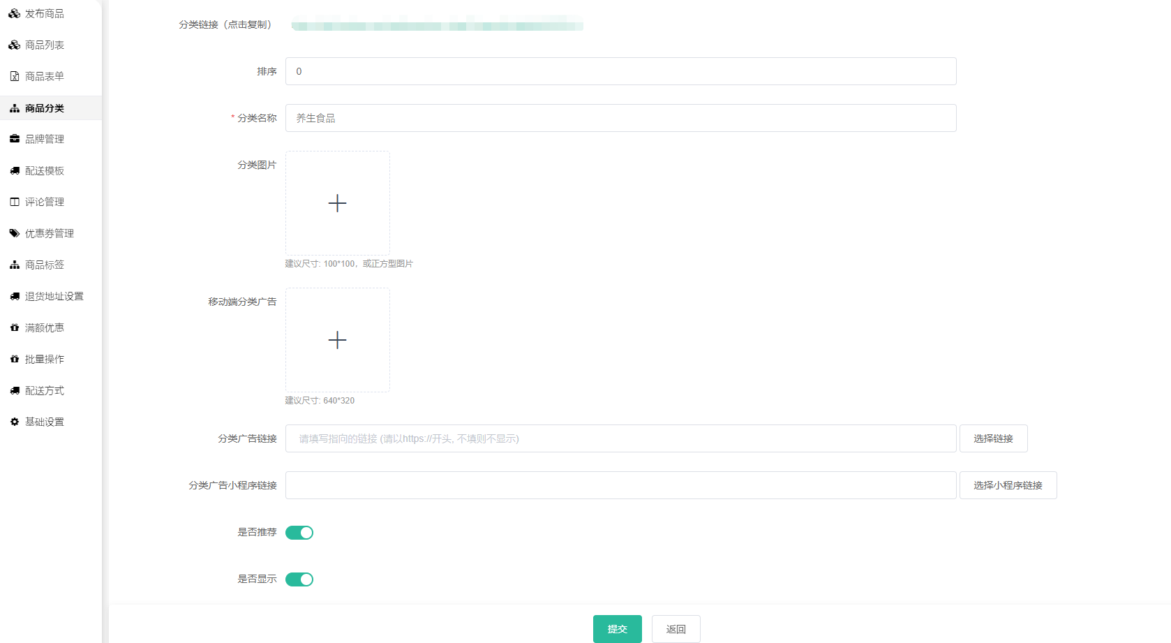 是否显示:如果设置为否,则前端不显示该分类入口。